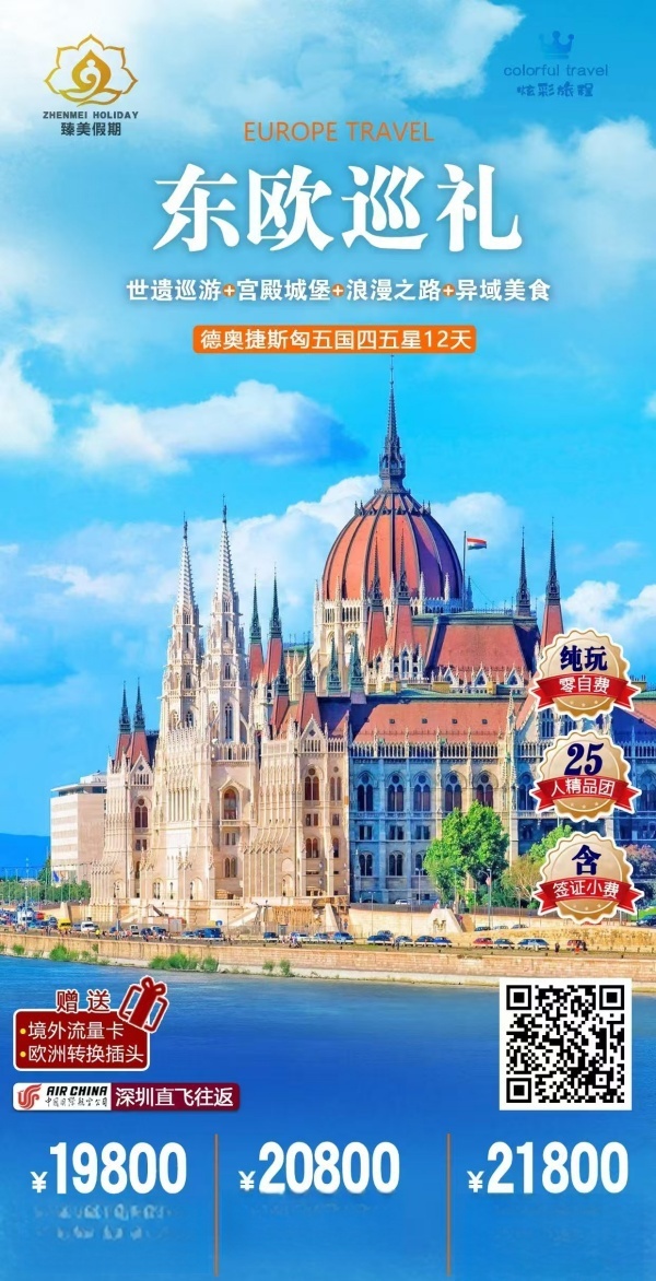的哥特式教堂,整座城市的建筑风格充满着巴洛克时期的色彩  第3天 慕尼黑(德国)--新天鹅堡(德国)- 萨尔茨堡(奥地利用餐:早餐()- 午餐()- 晚餐() 住宿:四-五星酒店 酒店早餐后,乘车前往德国富森参观迪士尼城堡原型-【★新天鹅堡】(入内参观),此乃巴伐利亚国王鲁道夫二世,为实现其一生理想表现出中古世纪骑士精神所建而成的梦幻城堡。(备注:新天鹅堡每天严格控制入内客流,如无法入内,则更改为高天鹅堡或退还门票);后乘车前往电影《音乐之声》的拍摄地、“音乐神童”莫扎特的故乡 - 萨尔斯堡。游览【萨尔茨堡老城区】,外观天才音乐家莫札特的住所【莫扎特故居】,游览【莫扎特广场】,在【官邸广场】外观【萨尔茨堡大教堂】、【主教官邸】和【圣彼得修道院】,远眺萨尔茨堡的精神象征【萨尔茨堡要塞】。莫扎特曾经说过:“我到过很多可爱美丽的地方,但没有一个能比得上萨尔茨堡那醉人的自然美景。”之后前往萨尔茨堡入住酒店休息。景点介绍:【新天鹅堡】】座落于巴伐利亚阿尔卑斯山脚下的新天鹅堡,有如童话故事中的梦幻城堡,风景如画、绿意盎然,是德国最受欢迎的观光景点之一。新天鹅堡由巴伐利亚深受爱戴的君王路德维希二世下令建造,采用罗马复兴式建筑风格,周边风景优美怡人,仿佛走进了童话般的梦境!   第4天 萨尔茨堡(奥地利)--国王湖--哈尔斯塔特-格拉茨用餐:早餐()- 午餐()- 晚餐() 住宿:四-五星酒店 早餐后,乘车前往最富盛名、也是听视觉达到最完美享受的◎国王湖区,车子行驶于如诗如画的阿尔卑斯山大道(Alpine road)上,沿途的景致让你无暇分心,每一幕都想收藏进你的相机。接下来乘车前往被誉为“世界最美小镇”哈尔施塔特,午餐安排当地特色【鳟鱼风味餐】,让您大快朵颐。”漫步【哈尔施塔特湖畔】,如宝石般翡翠似的湖泊,倒映着青山白云,宛如童话世界,畅游【集市广场】,搜罗有趣精致的纪念品。后乘车前往奥地利美丽的城市格拉茨,1999 年被列入《世界遗产目录》。晚餐后入住酒店。景点介绍:【国王湖】KONIGSSEE 是贝希特加敦国家公园的一颗明珠,四面都是悬崖峭壁,它仿佛是吸引游客的一块巨大的磁石。这个如挪威峡湾一般被高耸、群山所环抱的湖泊—国王湖举世闻名。许多来访的旅人每每赞叹贝希特加敦国家公园这一带有如避世桃源,畅游山间小路,每一处山谷的俯视。【哈尔斯塔特】哈尔施塔特(Hallstatt)是奥地利最古老的小镇,被誉为“欧洲最美小镇”和“世界上最美丽的湖泊”,1997 年被联合国教科文组织列入“世界文化遗产”。哈尔施塔特湖是奥地利萨尔茨卡默古特地区 14 个湖泊中最富灵性的一个,群山环绕,四周海拔 3000 多米的山峰给湖泊形成一个天然屏障,犹如世外桃源,人间仙境,让人流连忘返。   第5天 格拉茨(奥地利)-346km-布达佩斯(匈牙利)用餐:早餐()- 午餐()- 晚餐() 住宿:四-五星酒店 酒店早餐后,乘车前往游览匈牙利首都布达佩斯,游览布达皇宫,圣三位一体广场,【★渔人堡】(入内参观)和历代匈牙利国王加冕的马提亚教堂,在堡垒山俯瞰布达佩斯的全景。前往佩斯城的英雄广场,广场上面细数历史伟人的雕塑、观看古今的高大建筑群。晚餐后入住酒店。亮点介绍:【布达佩斯】布达佩斯被誉为"多瑙河的明珠"。布达城与佩斯城由多瑙河一分为二 ,8座别具特色的铁桥飞架其上,将这对姐妹城市紧紧地连为一体。它是欧洲著名古城,位于国境中北部,坐落在多瑙河中游两岸,早先是遥遥相对的两座城市,后经几个世纪的扩建,在 1873 年由位于多瑙河左岸的城市布达和古布达以及右岸城市佩斯合并而成   第6天 布达佩斯(匈牙利)-201km- 布拉斯撕拉发用餐:早餐()- 午餐()- 晚餐() 住宿:四-五星酒店 酒店早餐后,乘车前往布拉迪斯拉发,参观著名的【★布拉迪斯拉发城堡】(四角城堡)*(入内)是斯洛伐克共和国的首都布拉迪斯拉发市显著的建筑物之一,位于多瑙河岸边的一座丘陵上,是座白红相间、四四方方的建筑,样子有点像立着四根帐杆的大床。后游览圣马丁教堂、米哈尔门等,旧城广场自由活动。午餐后乘车前往游览奥地利首都、世界古典音乐之都-维也纳,外观维也纳国家歌剧院、国会大厦;全世界第二高的哥特式尖塔教堂-圣史蒂芬大教堂及周边鼠疫纪念柱等繁华街区。当晚特别安排维也纳炸猪扒餐。晚餐后入住酒店。   第7天 维也纳(奥地利)-207km-克鲁姆洛夫(捷克)用餐:早餐()- 午餐()- 晚餐() 住宿:四-五星酒店 早餐后,前往游览 18.5 万平方公尺的【★美泉宫*】(入内参观)及后花园,在碎石子铺成平面上是一片片格局优雅,精雕细琢的花坛和草坪,美泉宫是坐落在奥地利首都维也纳 Vienna 西南部的巴洛克艺术建筑,曾是神圣罗马帝国、奥地利帝国、奥匈帝国和哈布斯堡王朝家族的皇宫,如今是维也纳最负盛名的旅游景点,美泉宫及其花园被联合国教科文组织列入《世界文化遗产名录》。。后乘车前往造访童话镇-克鲁姆洛夫,S 型河道如缎带环绕着城镇,放眼望去砖红屋顶,好像玩具一般精巧。游玩旧城区的巷弄中,有数不清各式各样的商店;山丘上的克鲁姆洛夫城堡,规模之大,在捷克境内仅次于布拉格城堡,从城堡俯瞰小镇,红瓦白墙的屋子在阳光下展露出迷人的风情。   第8天 布杰约维采(捷克)–约 145KM 布拉格用餐:早餐()- 午餐()- 晚餐() 住宿:四-五星酒店 早餐后,乘车前往游览捷克首都布拉格,布拉格