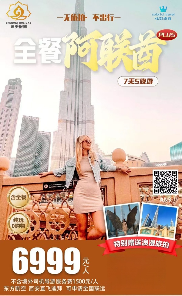 第1天 全国 ✈ 西安 ✈ 迪拜 - 沙迦用餐:早餐()- 午餐()- 晚餐() 住宿:阿联酋国际五星 12:00 咸阳国际机场 T5 航站楼集合,准备开启我们美好的行程。15:00 搭乘中国东方航空公司 MU705 班机飞往迪拜20:45 抵达迪拜,前往指定的地点排队照眼睛,入境(大约 1-2 小时),举牌接机,前往沙迦入住酒店休息。联运航班时间待定,以航司批复为准;航空公司规定:联程航班必须按照顺序使用,首段航班未乘坐,后续航班全部作废!   第2天 沙迦 - 阿布扎比用餐:早餐()- 午餐()- 晚餐() 住宿:阿联酋 国际五星 酒店内享用早餐后,前往参观【沙迦之心(Heart of Sharjah)】,是阿拉伯重要的历史文化遗产腹地,也是沙迦文明的起源地。它集文化风俗、建筑艺术和古老遗迹为一体,再现了沙迦的辉煌历史。参观【沙迦艺术博物馆】(入内 40 分钟),这里是中东海湾地区规模最大的艺术博物馆。原汁原味的伊斯兰美学建筑,展示 500 余件出自阿拉伯及国际知名和新兴艺术家手笔的绘画和雕塑,甚至还有沙迦酋长殿下的私人珍藏,捍卫了从历史经典到现在流行的阿拉伯艺术瑰宝。【行程说明:此地为有深度的抽象艺术展览和艺术交流地,不允许馆内高声喧哗,团队不配备专业的馆内讲解员,导游车上讲解该馆的大概情况后入馆自由参观品鉴】。 前往【伊斯兰文明博物馆】(入内约 40 分钟,如遇周五或节假日闭馆,改为外观,无退费),是阿联酋首家伊斯兰文化博物馆,坐落于沙迦市区西部。馆内展室分为上下两层,来自伊斯兰国家的 5000 余件精美艺术品可让游客对伊斯兰世界有较为系统的了解。【行程说明:此地为虔诚的宗教文化场所,不允许馆内高声喧哗,团队不配备专业的馆内讲解员,导游车上讲解该馆的大概情况后入馆自由参观】。 前往【火车头黄金市场】自由游览(如遇关闭,变更其他景点)。 驱车进入最小的酋长国“阿之曼”,在著名的【阿之曼海滨】(停留约 30 分钟)由于这里没有其他的城市设施,所以海滩至今仍保留着原始的海滨风貌;岸滩宽广平坦,沙质纯净绵软,环境恬寂幽静,海天风光无限!美丽的阿之曼海滨一直延伸到沙迦。 前往阿布扎比—阿联酋第一大酋长国 途径【国会大厦】(车览)【文化广场】(车览)【酋长皇宫】(车览)了解阿联发展的历史。 前往【Heritage Village 民俗村】(约 30 分钟)在海滨大道上,可远眺对岸的海景与美丽沙滩;在漫长的海岸线-白沙、阳光,使您仿如置身于夏威夷。 途径【WAHAT AL KARAMA 纪念碑】(车览),占地 4.6 万平方米,是一座致敬为国捐躯的阿联酋烈士们的永恒纪念碑,以怀念阿拉伯联合酋长国自 1971 年以来的英雄士兵、警察、外交官及平民。【阿提哈德塔酒店】(车览)速度与激情拍摄地;【阿布扎比总统府】(车览)-一座全新打造的文化地标“国家宫殿”(Qasr Al Watan),总统府是当今阿联酋内阁和阿联酋最高权力机构联邦最高委员会的官方会议场所,也是正式国事访问和各国首脑活动的举办地。随着它向公众开放,参观者将有机会对阿联酋的政权制度和价值理念进行深入的了解,探究保完好的文化传统遗。 行程结束后,前往酒店入住休息。温馨提示:1.同团有其他客人入住不同星级酒店,根据行程顺路原则安排每日接送,请提前知晓,谢谢理解!2.如阿布扎比/迪拜遇展会或其他情况酒店满房,则此日改为入住沙迦或迪拜同级酒店,敬请谅解!   第3天 阿布扎比用餐:早餐()- 午餐()- 晚餐() 住宿:阿联酋 国际五星 酒店内享用酒店自助早餐,前往参观【谢赫扎耶德清真寺】(入内参观约 30 分钟,不含主殿入内),阿布扎比最大清真寺【着装要求:谢赫扎伊德清真寺入内参观时男士需穿着有领衬衫及长裤,女士不能穿露肩的上衣及短裙,请客人提前准备合格服装,以免到时不能入内参观 ,此景点为免费开放;】行程说明:清真寺停留时间以抵达和离开停车场为准,清真寺景区目前包含清真寺自带商业餐饮区、地下通道及通道内临时展览、清真寺,故停留时间是涵盖整个大的清真寺区域包含客人换装和安检时间,请提前知晓! 之后乘车前往萨迪亚特岛【阿布扎比卢浮宫博物馆】(入内参观 40 分钟),您可以在穹顶下的步道上漫步并俯瞰大海。直径 180 米的巨大穹顶由近 8000 个独特的金属星星构成,这些星星组成复杂的几何图形。当阳光透过穹顶射下来时,穹顶下会呈现出富有动感的光之雨,令人联想起阿联酋绿洲上婆娑重叠的棕榈树。在这里光影与文化艺术珍品的穿梭下,它可以令人们了解到相应的国家、历史和地理环境,但又不只是平庸地诠释了人类文化发展的进程。 前往萨迪亚特岛【亚伯拉罕之家】(入内参观 30 分钟)此景点实行预约制,如预约不到则改为外观,无任何退费,亚伯拉罕之家是一座典型的阿拉伯建筑,融合了三种宗教的审美观念。建筑内部装饰华丽,充满艺术气息。教堂、清真寺和犹太教堂三座宗教建筑相互毗邻,体现了和谐共处的理念。在这里,不同信仰的人们可以共同祈祷、交流和分享信仰心得,寻求心灵的慰藉。亚伯拉罕之家是萨迪亚特岛的象征,展示了人类和谐共处的奥秘。它见证了人类历史上三种伟大宗教的传承,成为了多元文化交融的典范。在这里,人们可以感受到信仰的力量,体验到和谐共处的美好。【着装要求:女人们被要求在场所中遮盖头部。如果他们没有带围巾,他们将在大院提供一条。男性被要求穿盖住膝盖的裤子和盖住肩膀的衬衫。】 推荐前往【亚斯岛乐园 4 