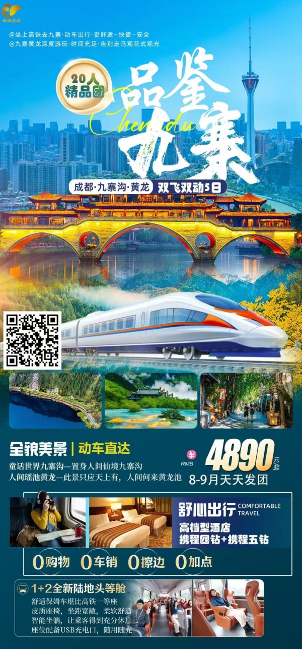 跟团游费用包含 1、交通安排:机票为特价票或团队票、不得签改、换人及退票,如果退票只退税);客人提供的名字及证件必须准确。若因名单提供错误造成的损失由游客自行承担;游客务必携带登机有效证件。 2、用车安排:青铁路动车+空调旅游车(2+1陆地头等舱,行业俗称保姆车),一人一正座,不提供座次要求,如遇人力不可抗力因素导致原有交通无法完成原有旅游行程,进行绕路等额外增加交通费用需游客自理),空调限时开放,确保车况良好,司机服务态度好、沿线有限制速度及部分路段维修,易发生堵车,请自带干粮,为保证车辆制动性能,沿途均需停车加水。机场接送及中转接送另安排小车; 3、住宿安排:行程所列酒店4晚当地酒店住宿,酒店双人标准间带独立卫生间。未特别说明时,产生自然单间敬请自理。内陆城市住宿条件有限,请游客理解。 (特别说明:行程所列酒店均属行业内评定标准,非国家旅游局授牌的星级酒店;行程安排不指定酒店,均根据当天实际情况安排酒店入住) 4、门票服务:含景点首道大门票,景区交通敬请自理! 门票优惠退费参考: ①12.16-3.31优惠退20元/人(熊猫or都江堰20)、免票退90元/人(熊猫or都江堰40+九寨30+黄龙20) ②4.1--5.31优惠退105元/人(熊猫or都江堰20+九寨65+黄龙20)、免票退210元/人(熊猫or都江堰40+九寨130+黄龙40) ③6.1-11.14优惠退135元/人(熊猫or都江堰20+九寨65+黄龙50)、免票退270元/人(熊猫or都江堰40+九寨130+黄龙100) ④11.15-11.30优惠退100元/人(熊猫or都江堰20+九寨30+黄龙50)、免票退200元/人(熊猫or都江堰40+九寨60+黄龙100) ⑤12.1-12.15优惠退20元/人(熊猫or都江堰20)、免票退120元/人(熊猫or都江堰40+九寨30+黄龙50) 5、全程4酒店早餐3正餐;早餐为酒店餐厅用餐或路早,不用不退。当地饮食与游客饮食习惯差异较大,餐饮条件有限,尽请游客谅解并可自备些零食(方便面、榨菜等),景区段所含早餐和晚餐在所住酒店用套餐(酒店晚餐10人1桌10菜1汤,不足10人菜品递减,不用餐不退费用,中餐在沿途指定餐厅用餐。 6、导游服务:全程优秀持证中文导游服务,机场接送及中转无导游。 7、儿童服务:2-12岁,含车费、餐费、保险,酒店早晚餐超高费用自理不占床小孩不含酒店早晚餐,敬请按照酒店价格现场补费用,价格以酒店规定为准。8、保险服务:含旅行社责任保险,请游客自愿办理旅游人身意外险,如参团人员为外宾请提前告之。 费用不含 1、单房差,酒店押金,不占床不含早餐。 2、不含酒店内洗衣、理发、电话、传真、收费电视、饮品、烟酒、吸氧、医疗、行李搬运等个人消费。 3、由于客人是失信人员而造成的机票、火车票、住宿、门票、车费等损失由客人自理 4、不含航空意外险,送机人员会推荐,如有需求请自愿购买,不强迫。 5、因天气、台风、政策调整、自然灾害、飞机火车延误或取消到、故障等旅行社不可抗拒原因,增加行程以外的额外费用(如机票损失、吃、住、行等),由客人自理 6、客源地至出港地机场或火车站往返交通费用。客人自由活动期间产生的交通费用、餐费等个人消费费用。 7、由于旅行者违约、自身过错、自身疾病等自身原因,导致的人身财务损失和额外费用支付,由客人自理。 8、以上报价我社仅提供旅行社发票,需住宿、车费、餐费等原始发票的客人请提前告知,待确认后若能提供,税费客人自理。 9、不含景区内小交通: 必须消费:九寨观光车旺季4.1-11.14:90元/人,淡季11.15-次年3.31:80元/人,景区保险10元/人。 自愿消费:黄龙索道上行80元/人,下行40元/人,景区保险10元/人,耳麦30元/人,景区单程观光车20元/人;熊猫乐园or都江堰观光车耳麦30元/人。