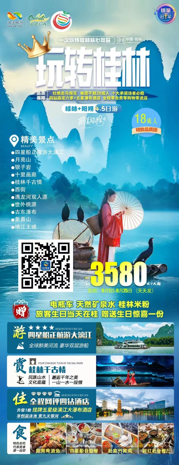 中国国旅(泉州)国际旅行社桂林旅游热线:0595-22225325客服手机(微信):18150962325